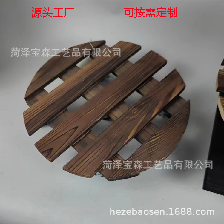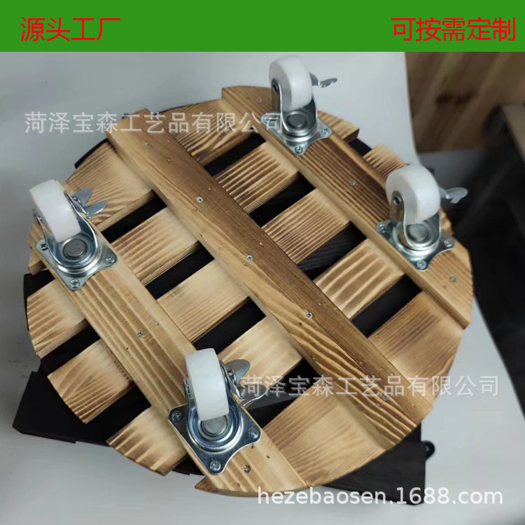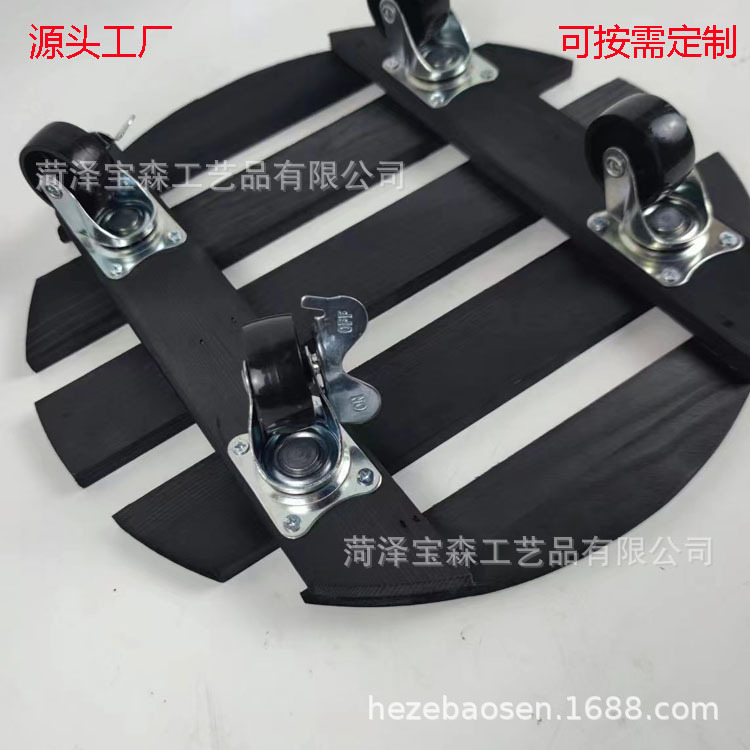 现货实木圆形万向轮花盆木托带轮花盆底座 碳化木质移动花托底座