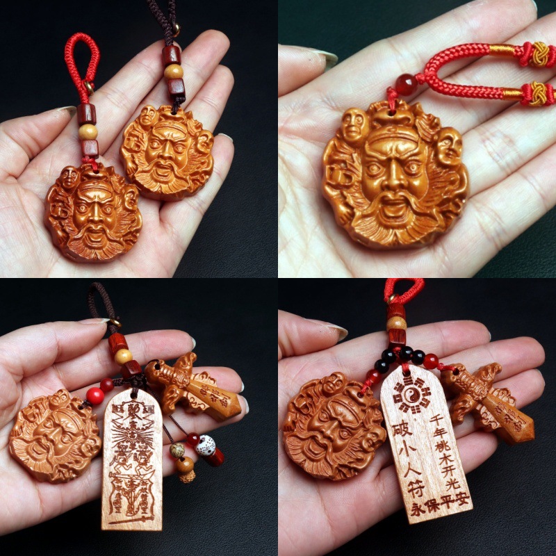 桃木钥匙扣 浮雕钟馗 桃木剑 虎头鞋钥匙扣走夜路平安钥匙挂件