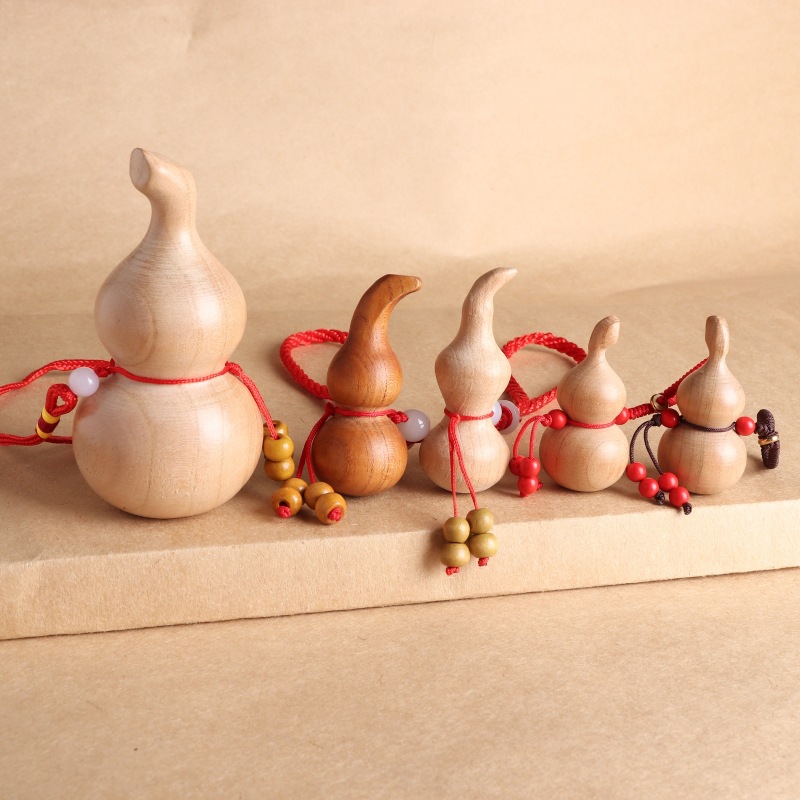 桃の木のヒョウタンのペンダントの取っ手の件の実木の手は小さいヒョウタンの木製の工芸の置物の木の彫刻のヒョウタンの卸売りを捻ります。