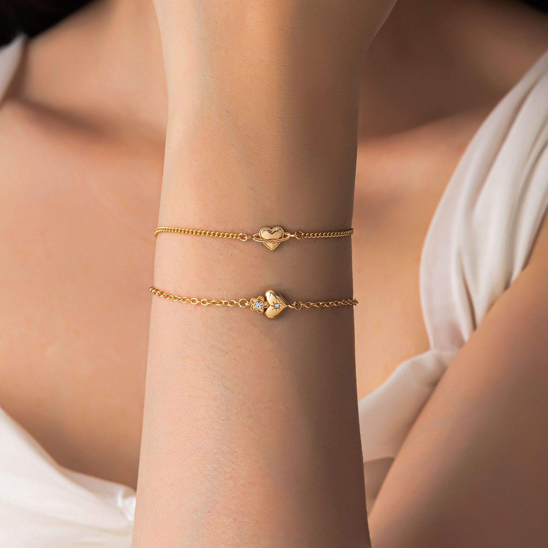 欧米のファッションは国境を越えて爆発した宝飾品は贅沢な風の愛のメッキの高級感のジルコンの金メッキはブレスレットのバッチを調節することができます。