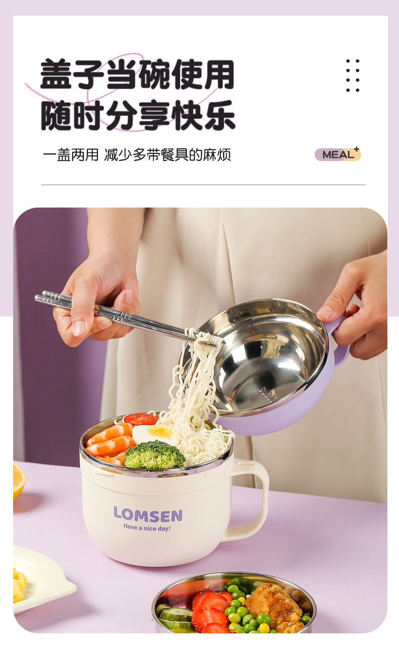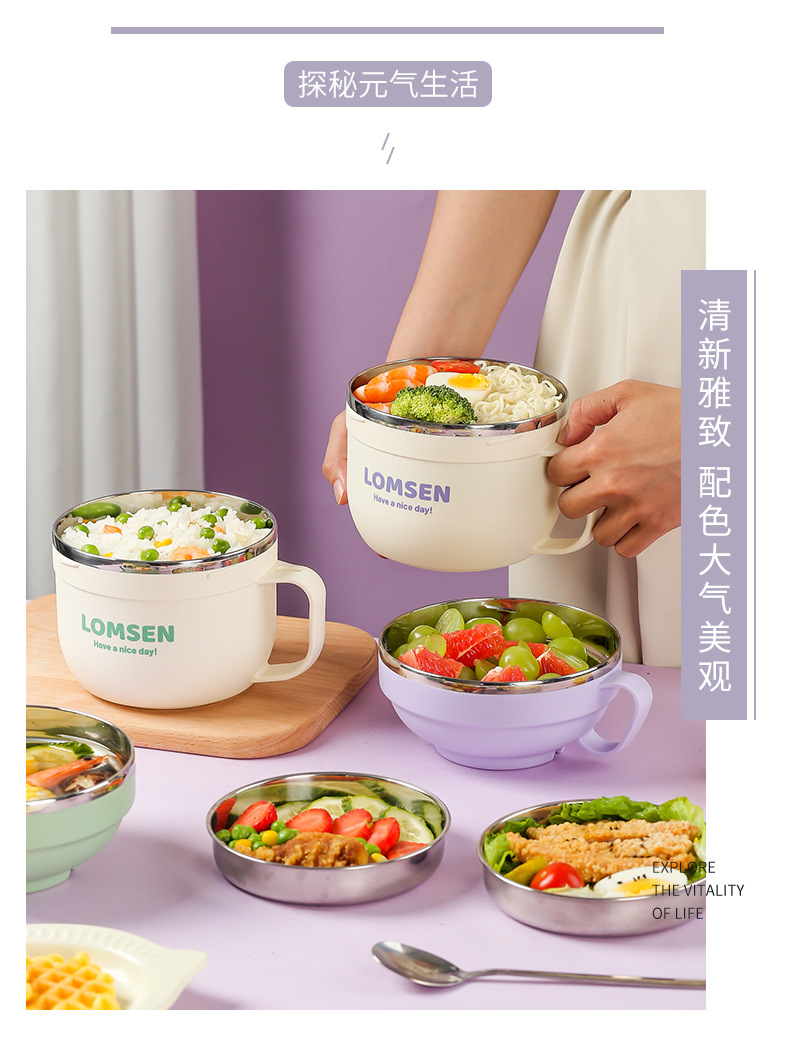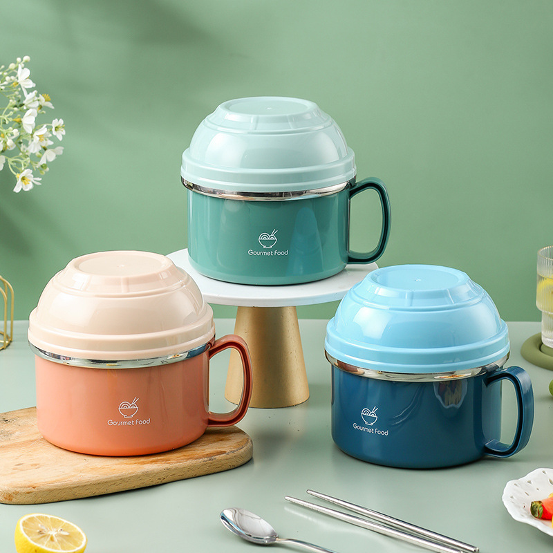 ステンレスのカップラーメンの碗は蓋を持ってサラリーマンの弁当箱の個人の弁当箱の小学生の専用の食事のコップを作ります。