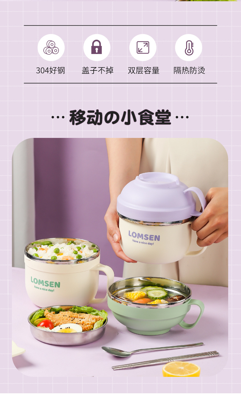 ステンレス保温弁当箱電子レンジで加熱できる弁当箱蓋付きサラリーマン弁当箱学生食堂で食事をする