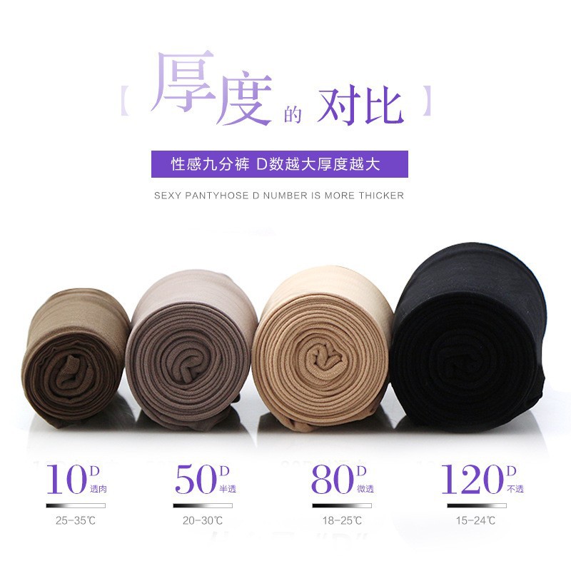 超油亮100% 九分馬油靴下の女性タイプの底付き防止フックの薄いモデル5D油光9分靴下のズボンの黒い糸