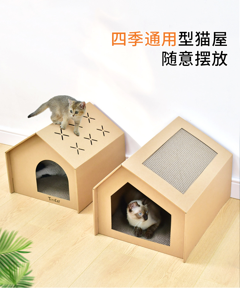猫用ハウスは四季通用、半密閉型の猫用紙箱ハウス、耐摩耗性があり、屑が落ちにくい、密閉型の四季一体型猫用遊び場です。