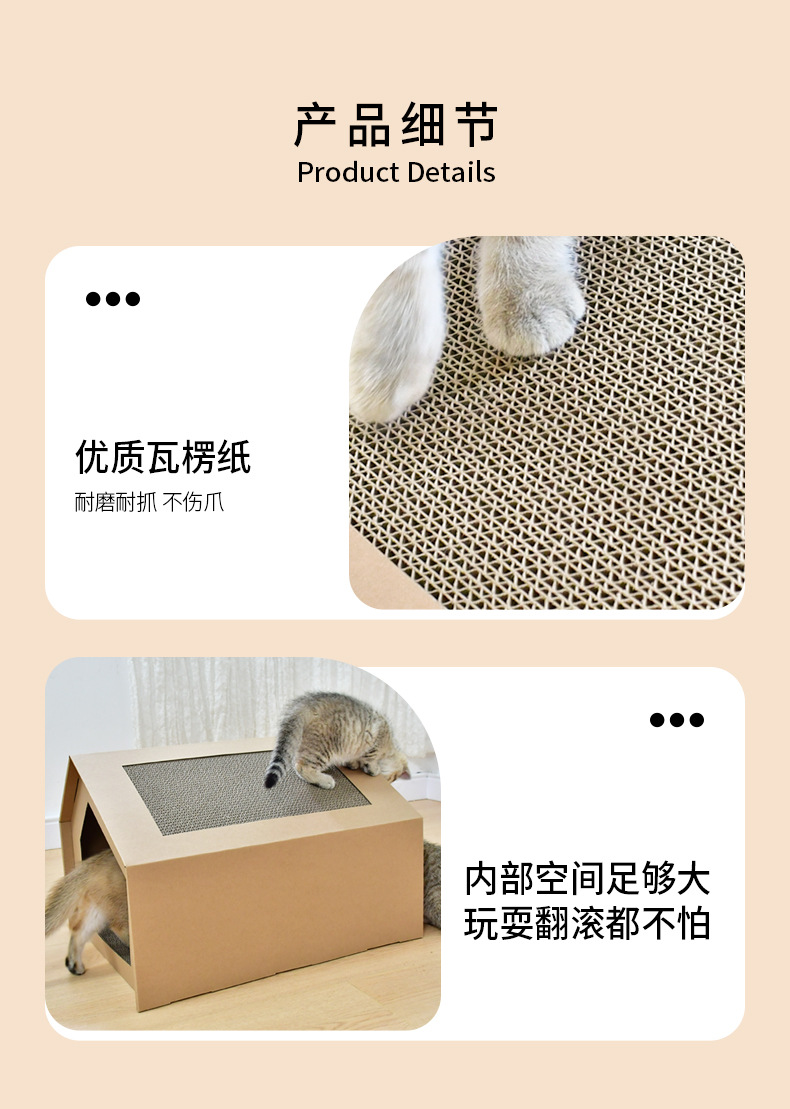 猫抓板一体猫窝别墅瓦楞纸耐磨耐抓纸箱躲避猫屋磨爪猫咪神器玩具