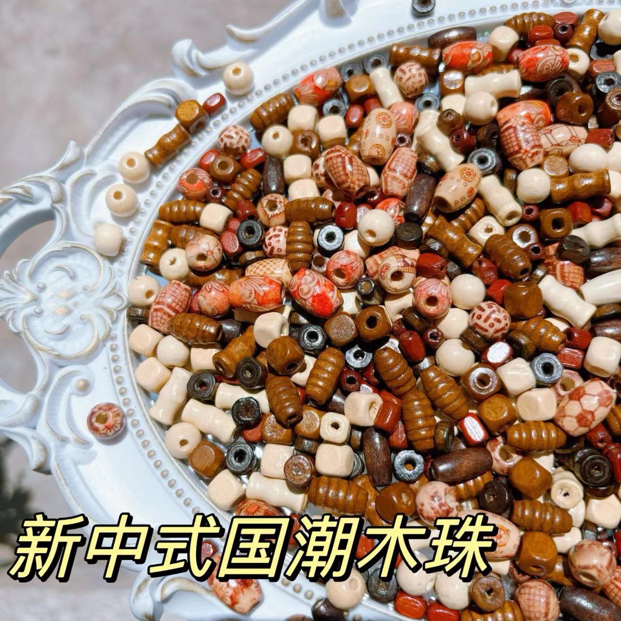 古風木珠数珠diy国風手串散珠中国風敦煌菩提手羽木竹節木走環