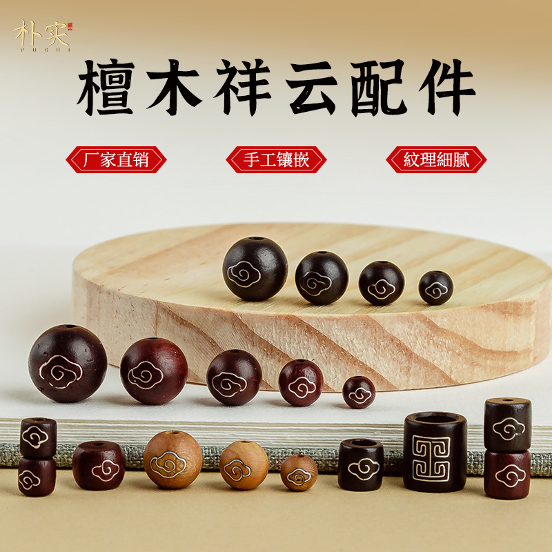 黒檀木散珠ボールdiy手作りビーズモザイク銀糸祥雲手串部品隔珠文遊びアクセサリー