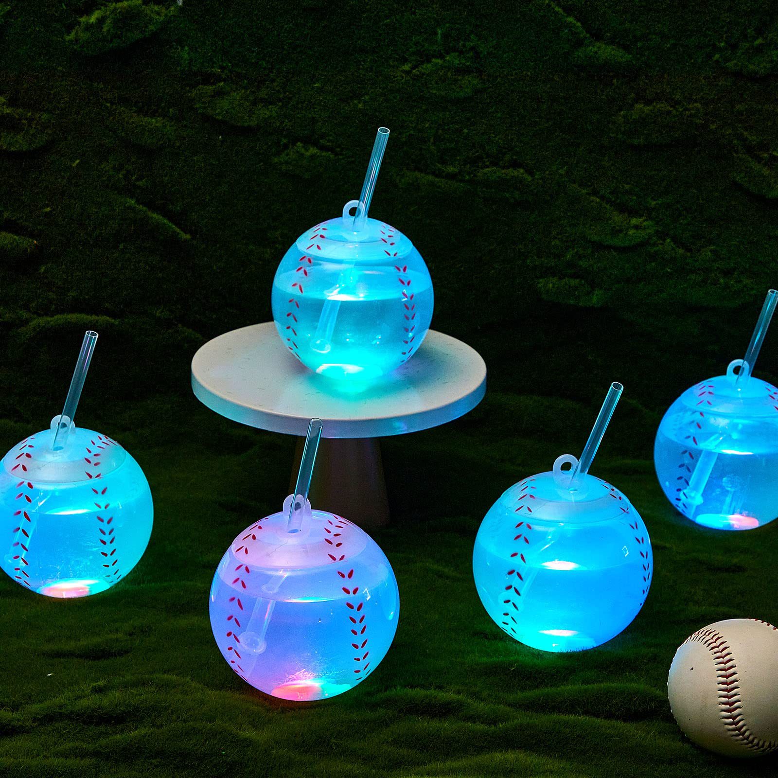 クロスボーダー热い贩売クリエイティブ野球スタイリングled発光水カッププラスチックボトルドリンクストローカップ运动会子供用カップ