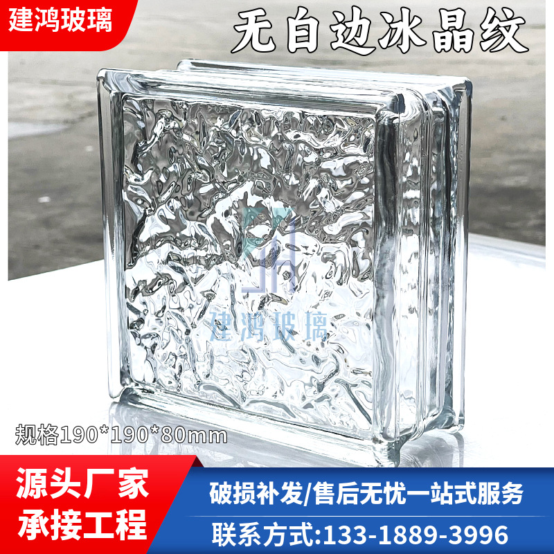 厚さ80、白い縁なし、氷結晶雲模様の中空ガラスレンガ、インターネット有名人クリスタルレンガ背景壁パーティション装飾ライトストリップ