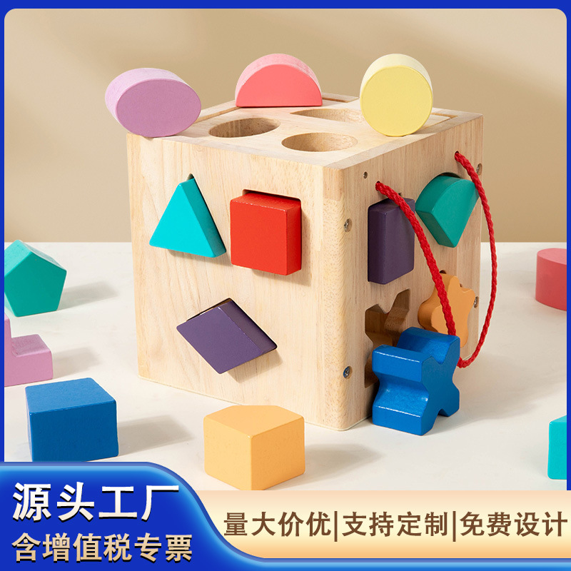 木制儿童早教17孔多功能智力盒几何形状配对颜色认知积木益智玩具