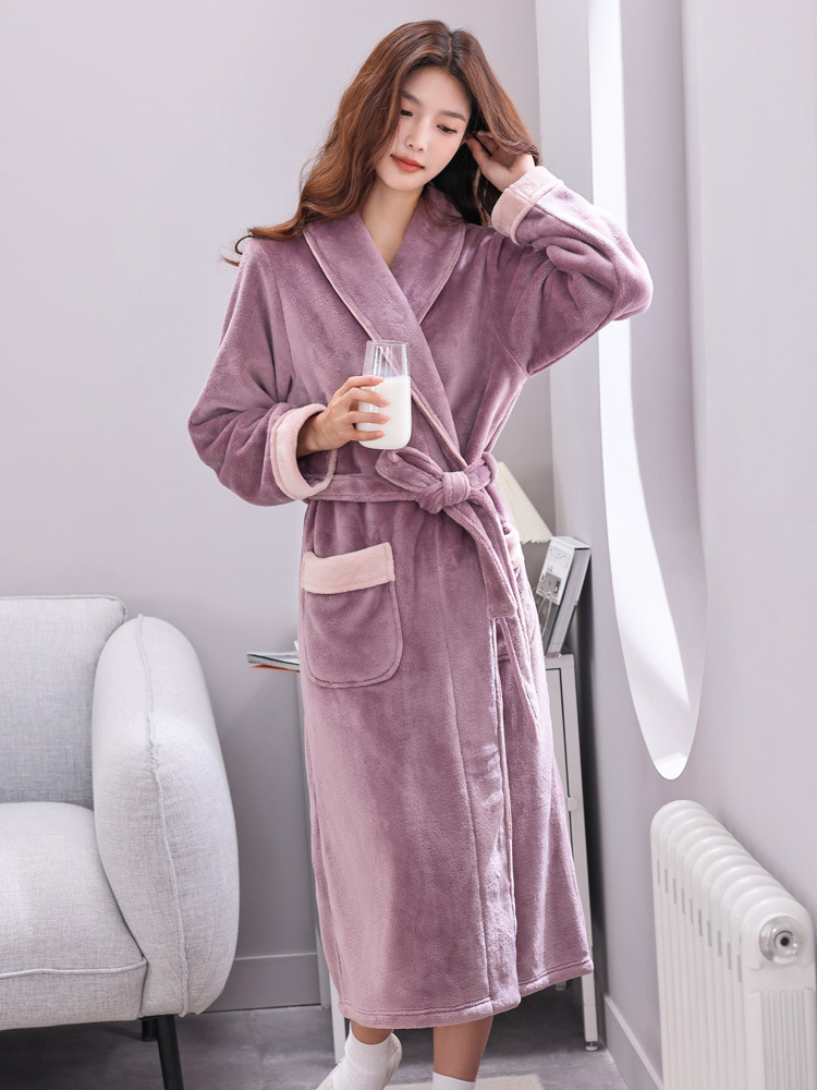 秋冬季睡袍女冬法兰绒加厚保暖睡衣男珊瑚绒浴袍女长款浴衣家居服