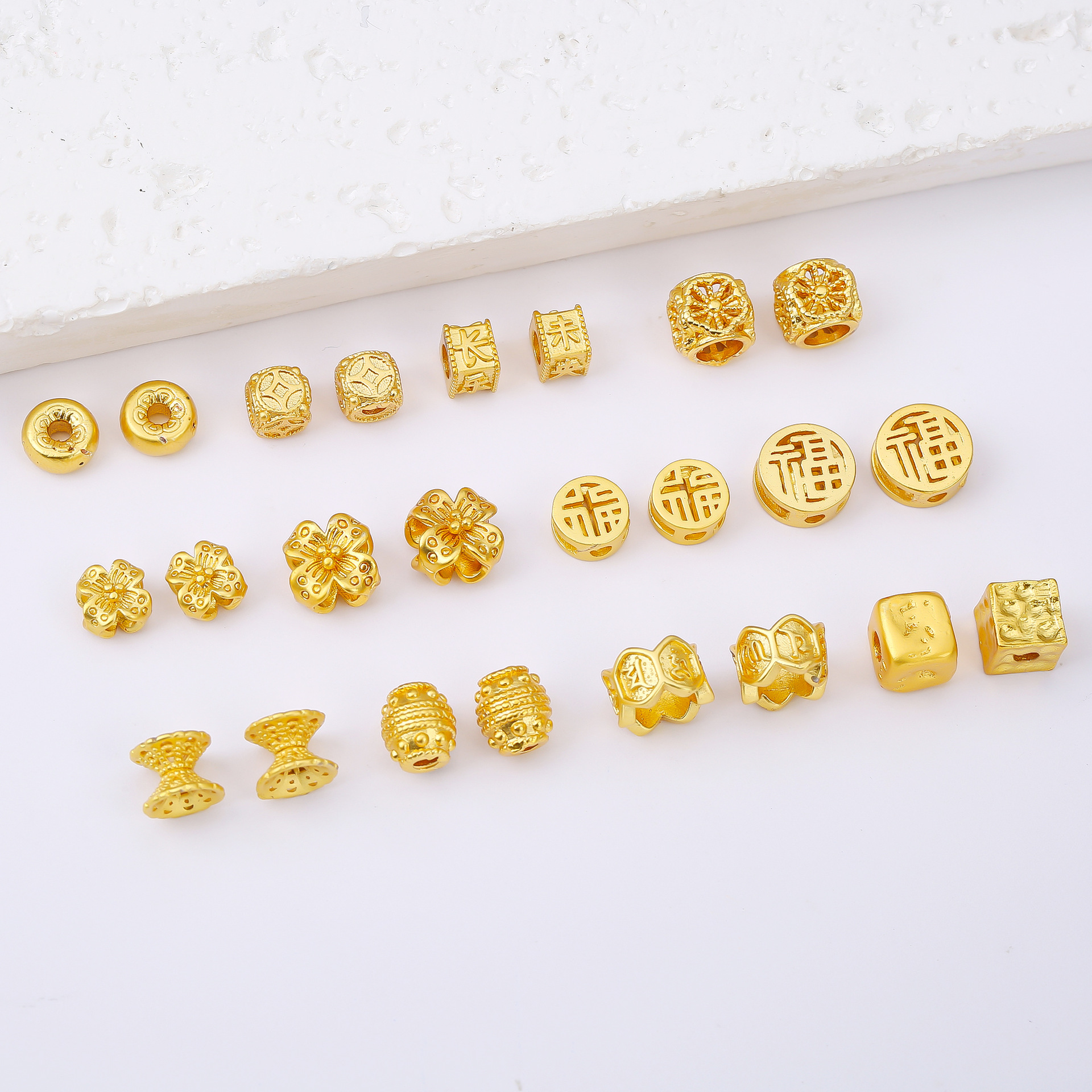 古法沙金保色隔珠コインビーズ四葉草仕切りdiy手作りブレスレットネックレスアクセサリー散珠