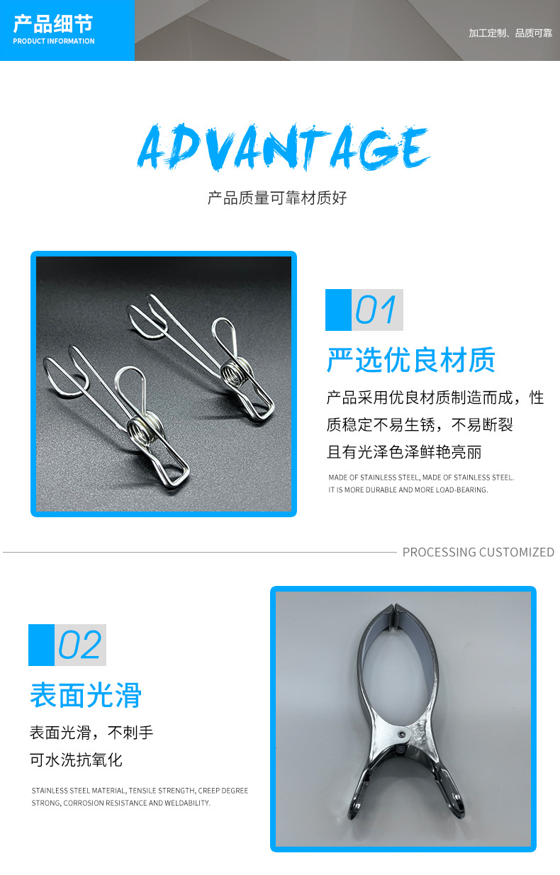 ステンレス製クリップ、衣類用クリップ、スプリング式防風衣類クリップ、乾燥用クリップ、布団クリップ、靴下クリップ、広凱