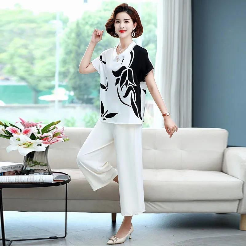大きいサイズのカジュアルシフォンワイドレッグパンツ女性のための 2025 春夏新作ハイウエストルーズドレープ中国風ダンスパンツ多用途