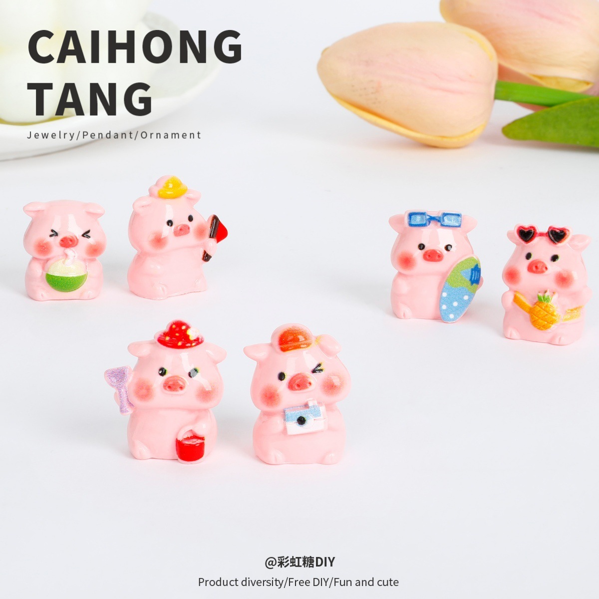 树脂卡通粉红发财猪公仔 DIY饰品配件创意桌面摆件自制钥匙扣挂件