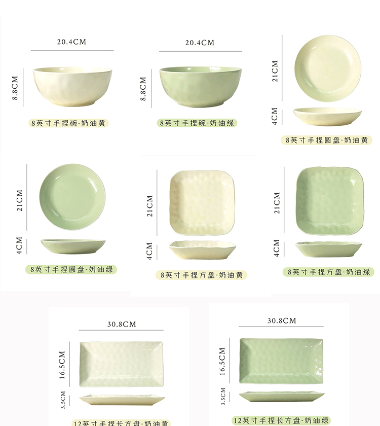 4インチ手捏ね皿-クリームイエロー,4インチ手捏ね皿-クリームグリーン,3.75インチの手握りボウル-クリームイエロー,3.75インチの手握りボウル-クリームグリーン,6インチの手握りボウル-クリームイエロー,6インチの手握りボウル-クリームグリーン,8インチの手握りボウル-クリームグリーン,8インチ手握りボウル-クリームイエロー,8インチ手握り円盤-クリームイエロー,8インチ手つまみディスク-クリームグリーン,8インチ手つまみ角皿-クリームイエロー,8インチ手つまみ角皿-クリームグリーン,12インチ手つまみ長方皿-クリームイエロー,12インチ手つまみ長方皿-クリームグリーン