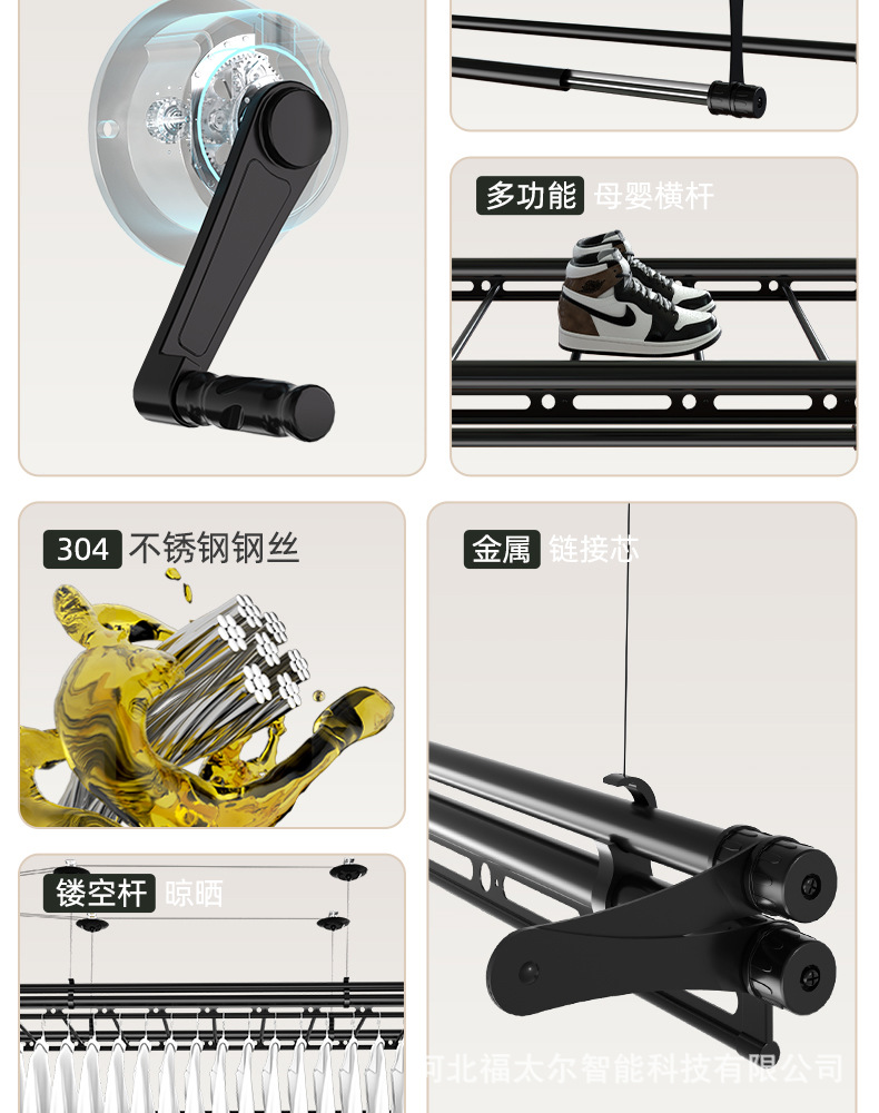 金貴夫人はハンガーを昇降させてベランダの手を振って物干し竿の4竿の室内のハンガーの母子のタイプの手動のハンガーを干します。