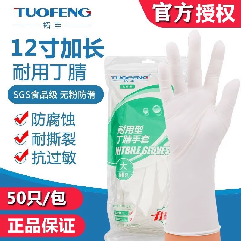 拓豊使い捨てニトリル手袋12インチ食品級防水滑り止め家事清潔飲食自動車修理50匹無粉