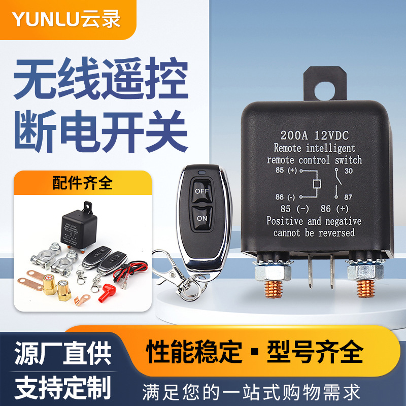 卸売バッテリー車用リレー部品一式200a12vワイヤレスリモコン電源遮断スイッチ