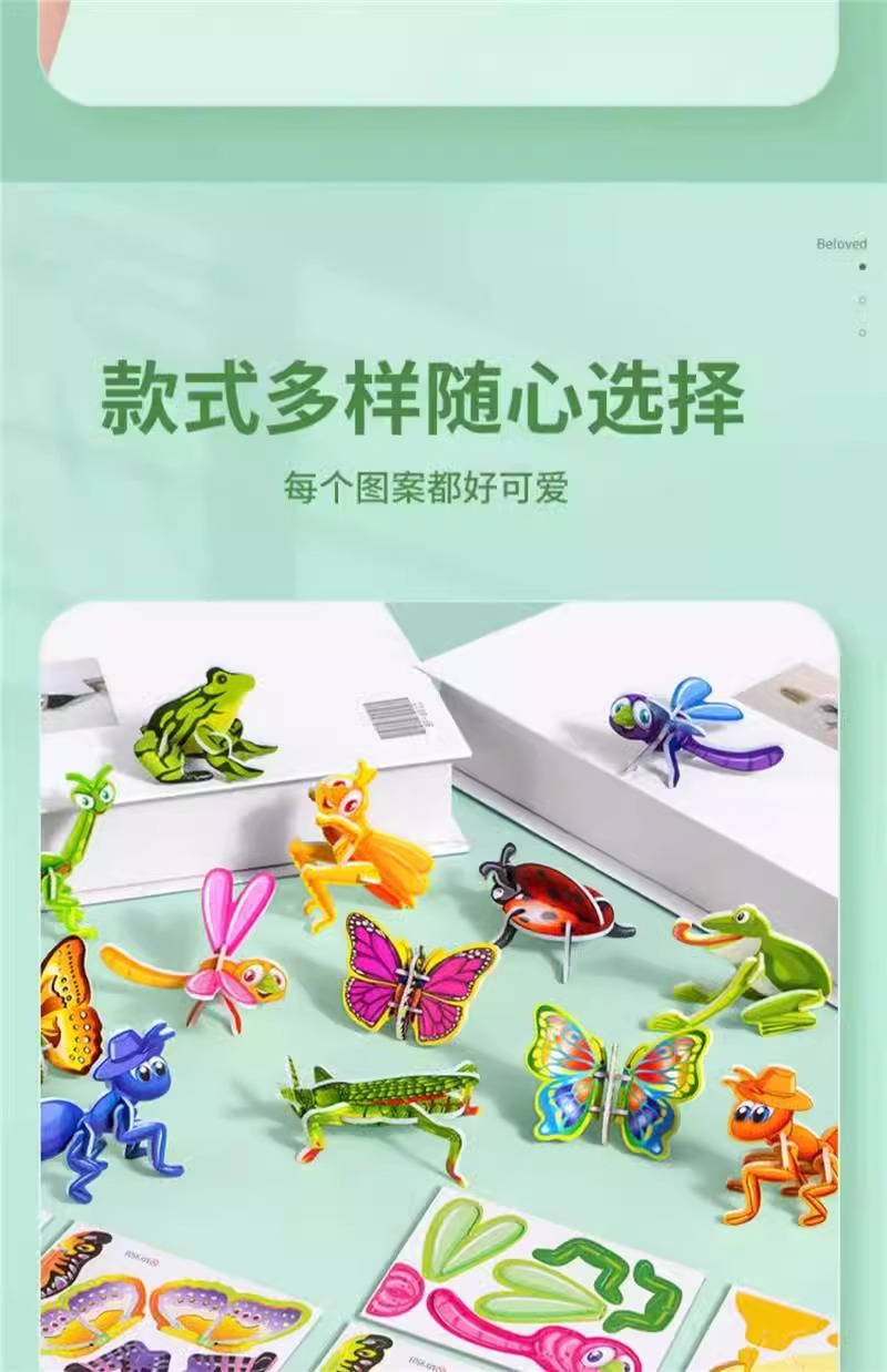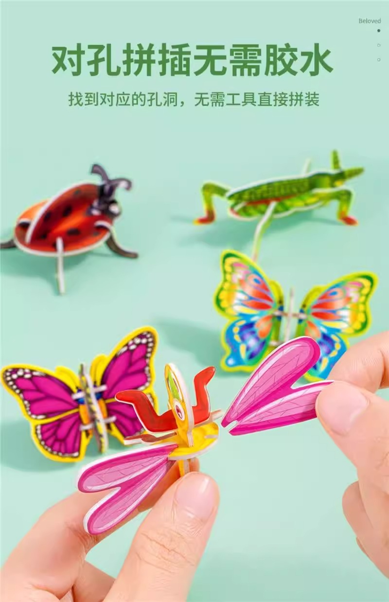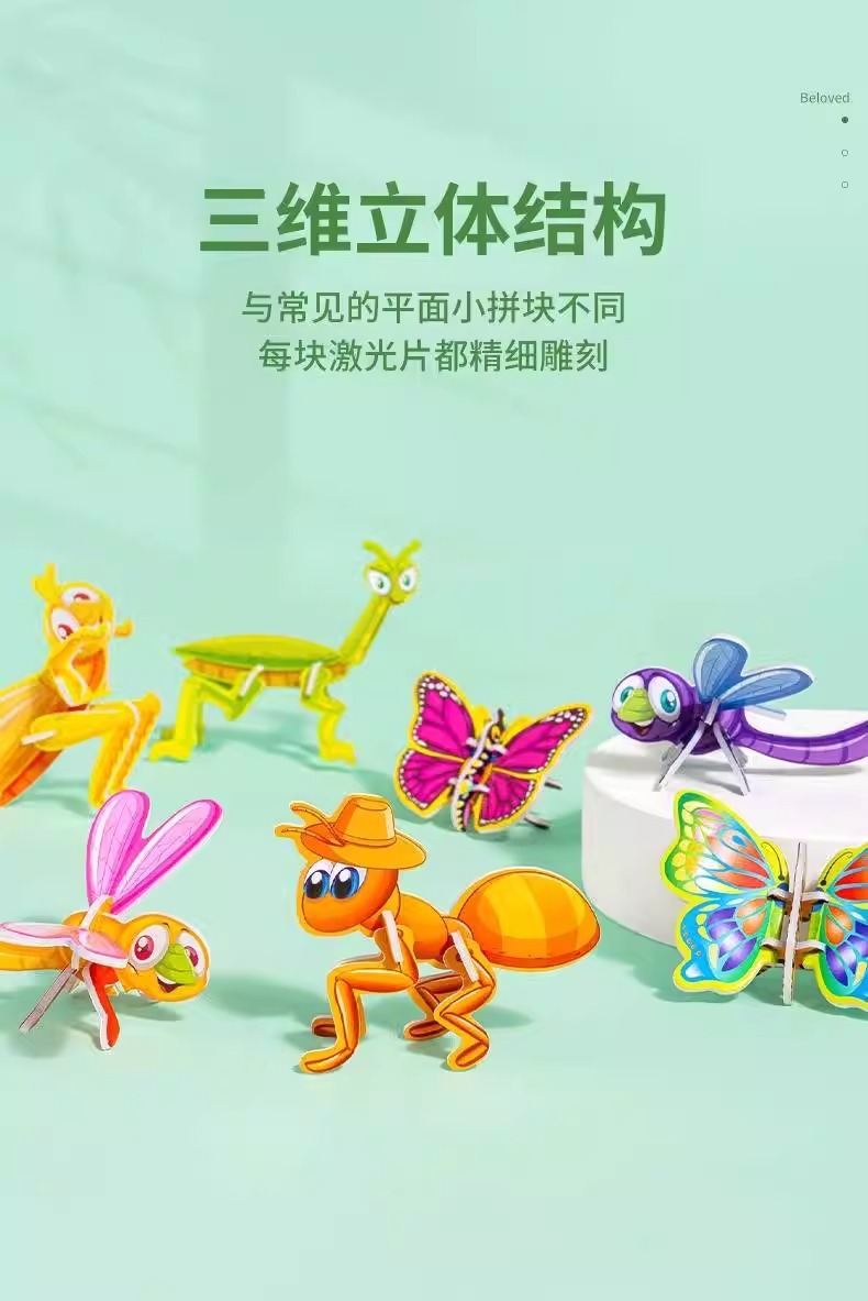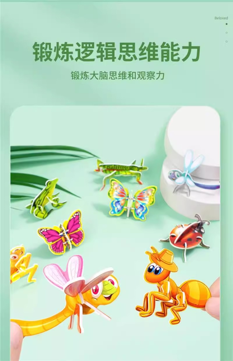 立体3d紙パズル子供創意昆虫パズルDIY幼稚園早教手作りパズル玩具