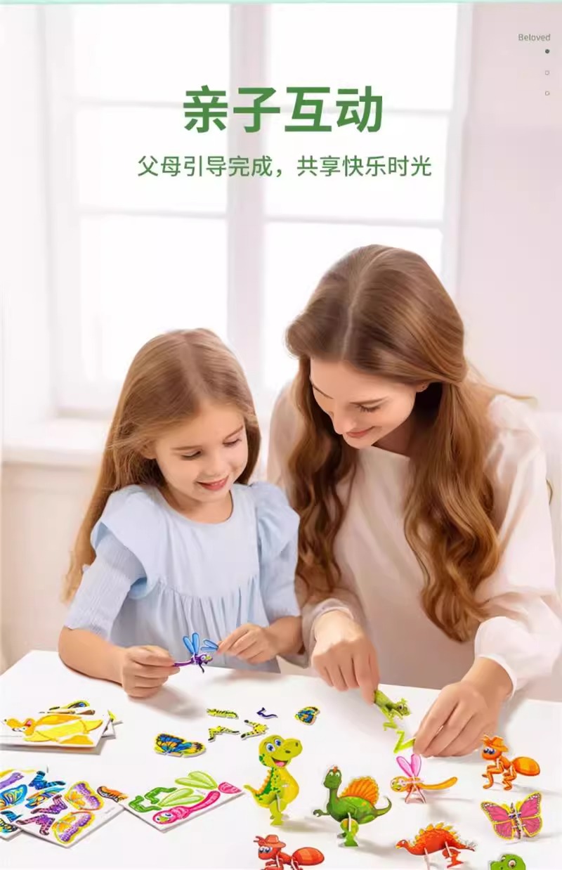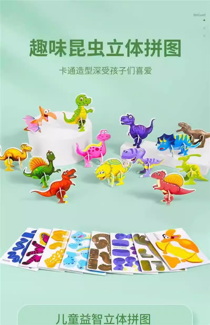 立体3Dパズル子供クリエイティブ昆虫恐竜パズルDIY幼稚園手作りパズル玩具プレゼント