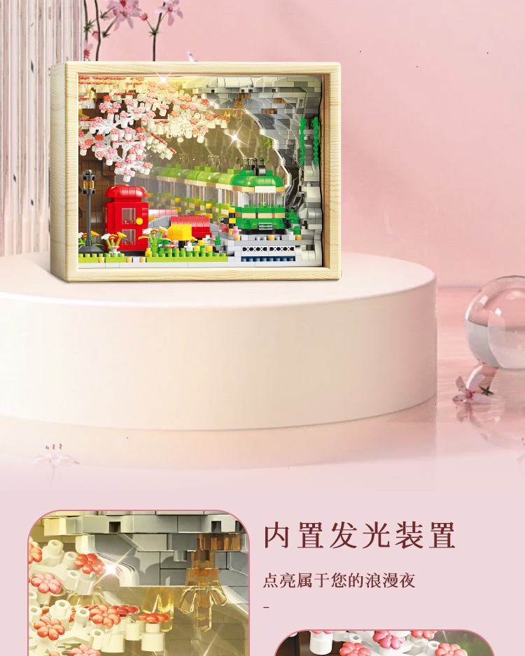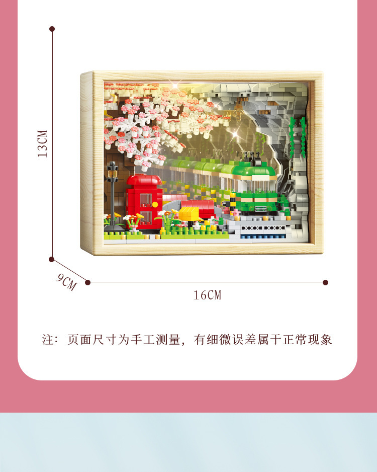 桜の木の家のレトロな列車の鏡像の木の枠の女の子の祝日の贈り物の益智は積み木のデスクトップの置物をつづり合わせます。
