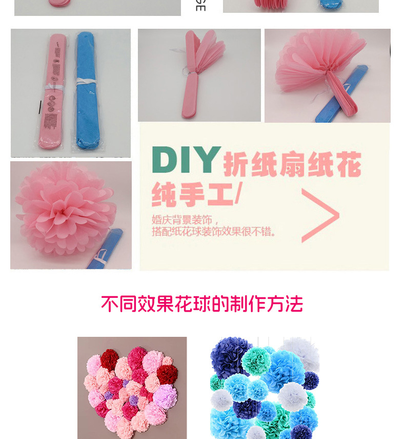 厂 家纸花球 庆派m对装饰花球彩色婚球折纸拉花pom pom花手工