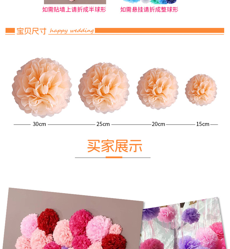 紙の花ボール 結婚式の装飾 結婚式の部屋の装飾 ショーウィンドウ ショッピングモール クリスマス 結婚式の写真撮影の小道具 クリエイティブな手作り