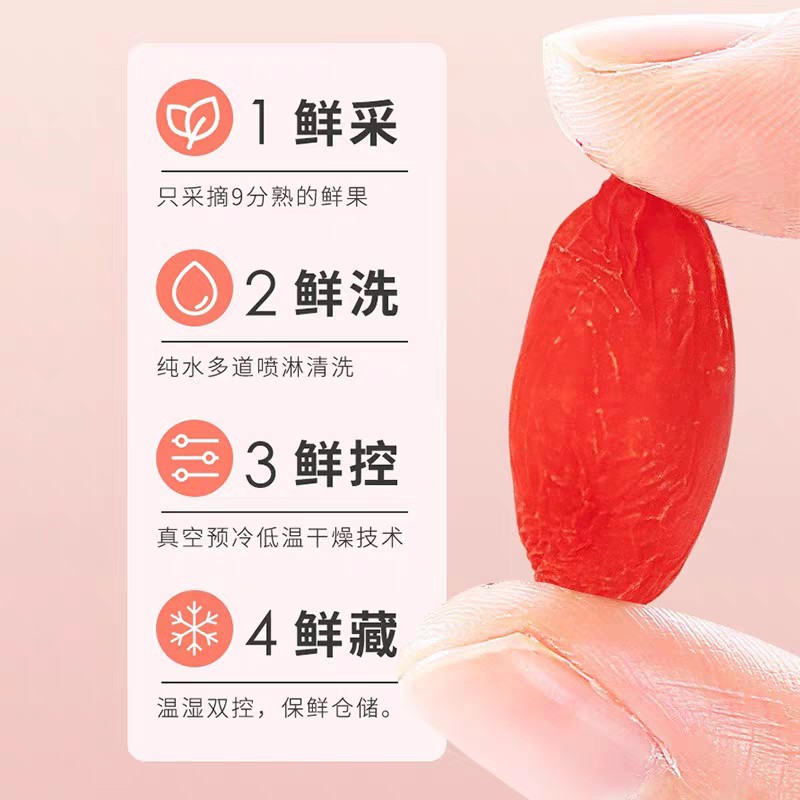 田间鲜果为原料,颜色好,不添加,保留新鲜度的锁鲜枸杞。