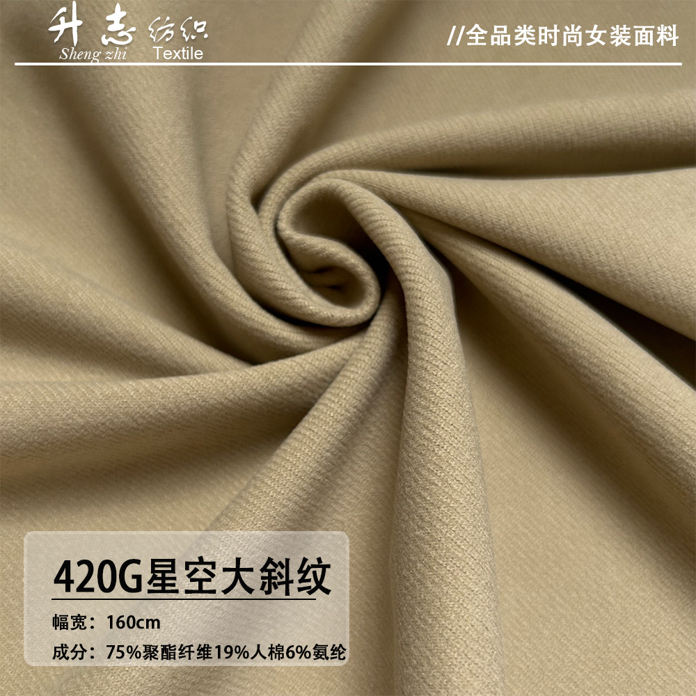 420グラムのTRは大きいツイルの秋冬の毛のニットの生地の毛のコートのコートの家庭用紡績のズボンの布地です。
