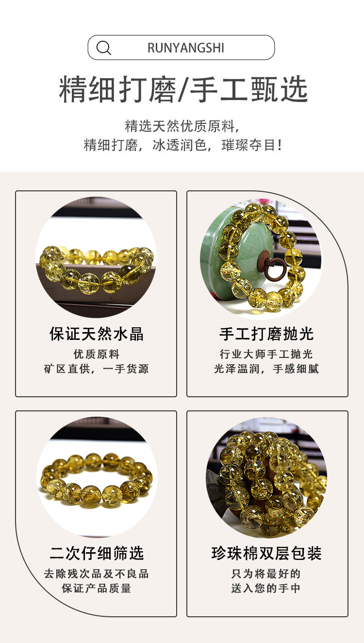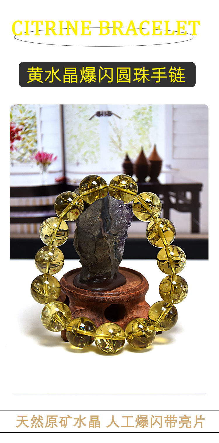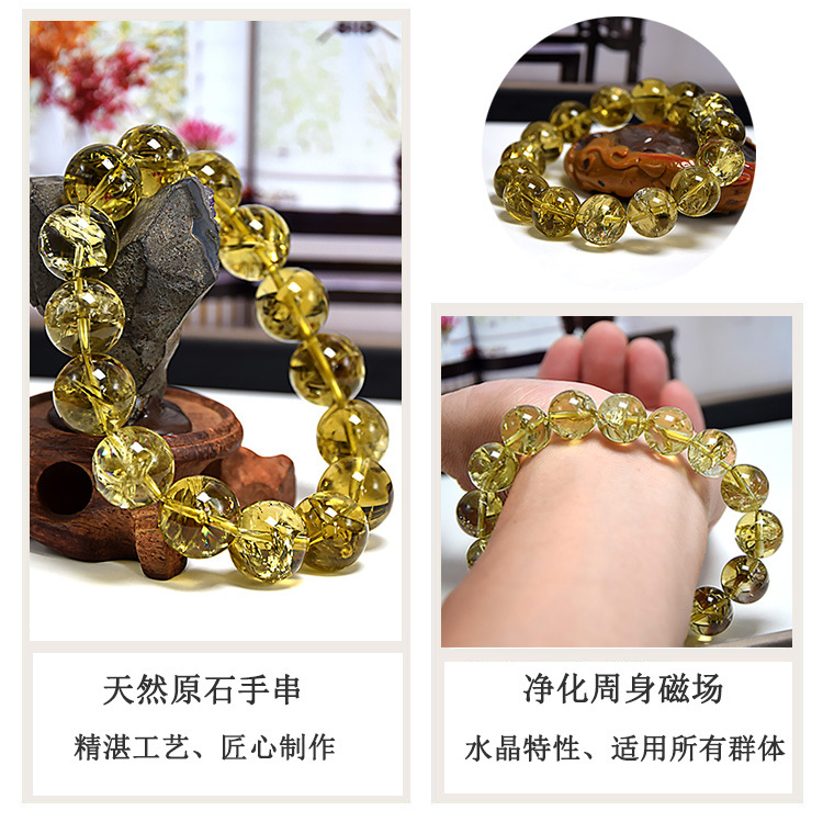 天然の黄水晶のブレスレットの女性の規格品のブラジルの黄色の水晶の原石のフラッシュの手の串の男性の贈り物の収集級