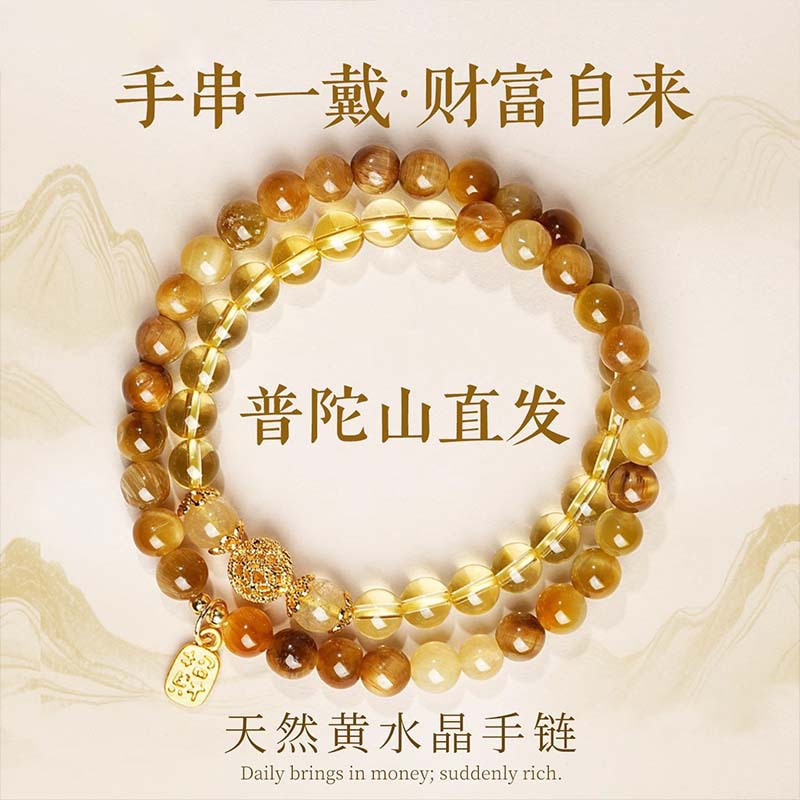 天然黄水晶手链金虎眼石双圈手串招财黄塔晶转运珠佛珠女款串珠