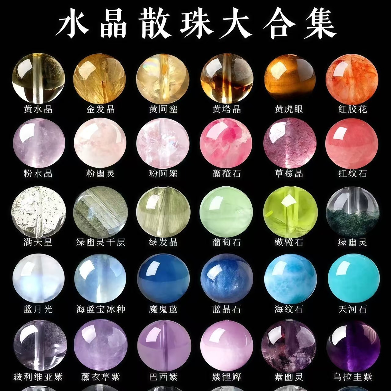 天然水晶散珠发晶单颗手工diy配件手链手串白水晶海蓝宝单珠串珠