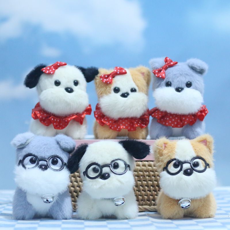 かわいい萌えメガネの子犬のストラップのぬいぐるみの人形のキーホルダーの卸売り