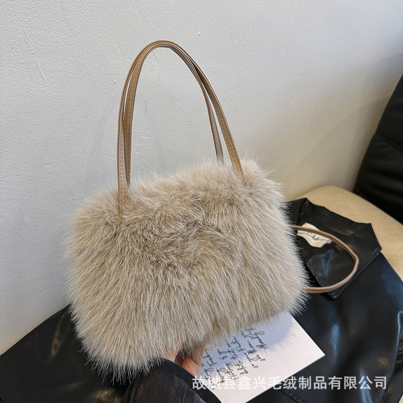 2025年供应秋冬精致感大容量单肩斜跨包 小众复古质感毛绒包包女