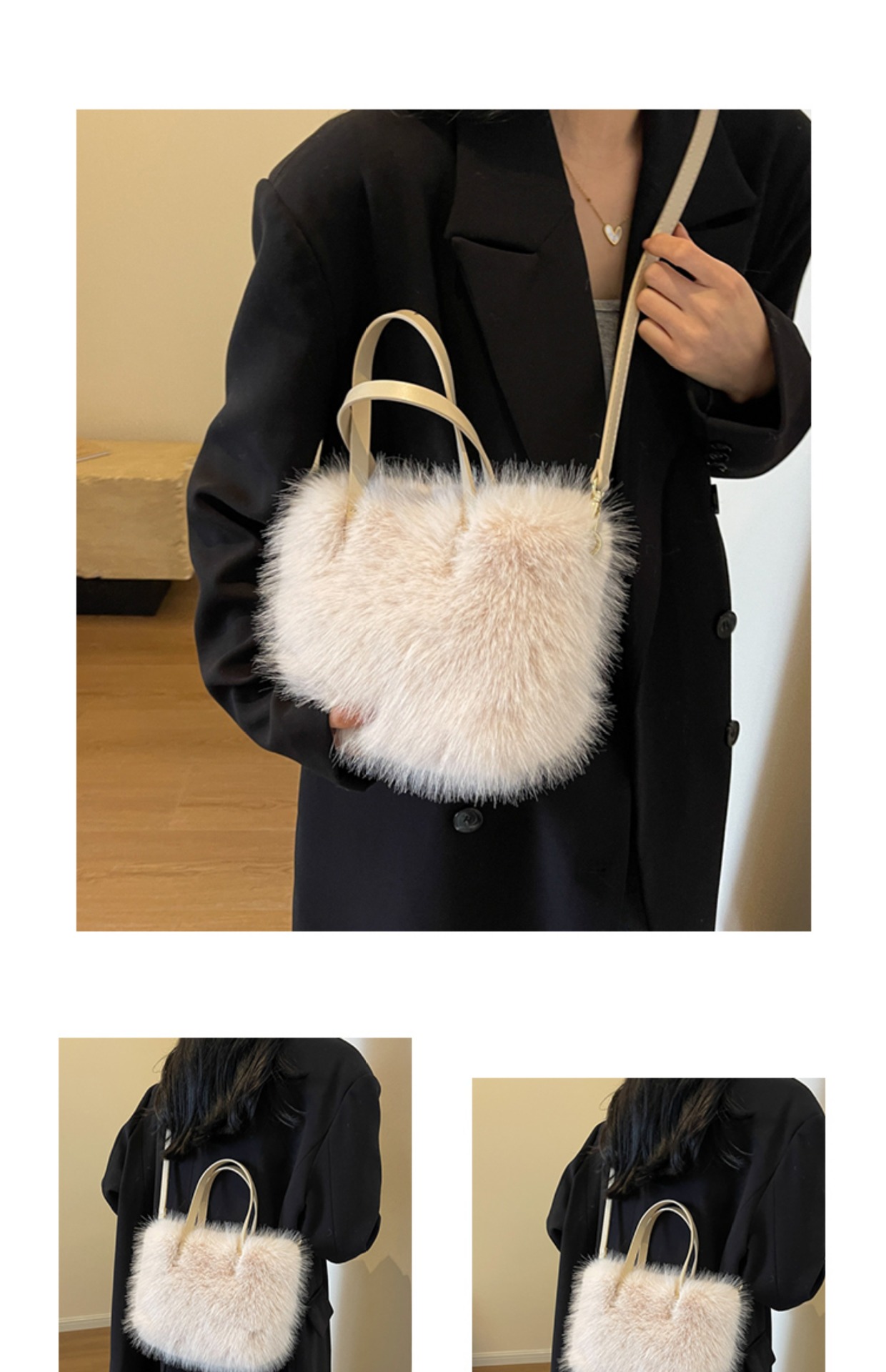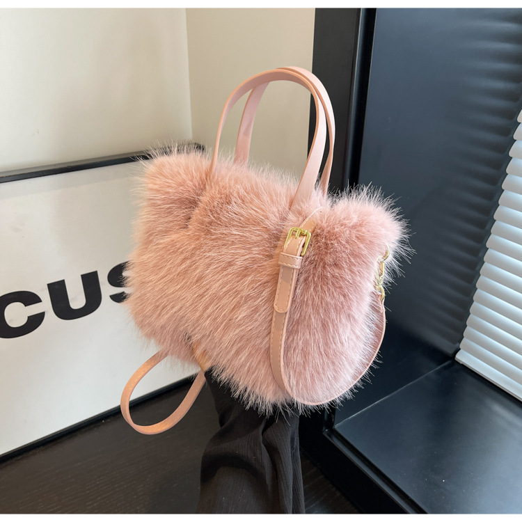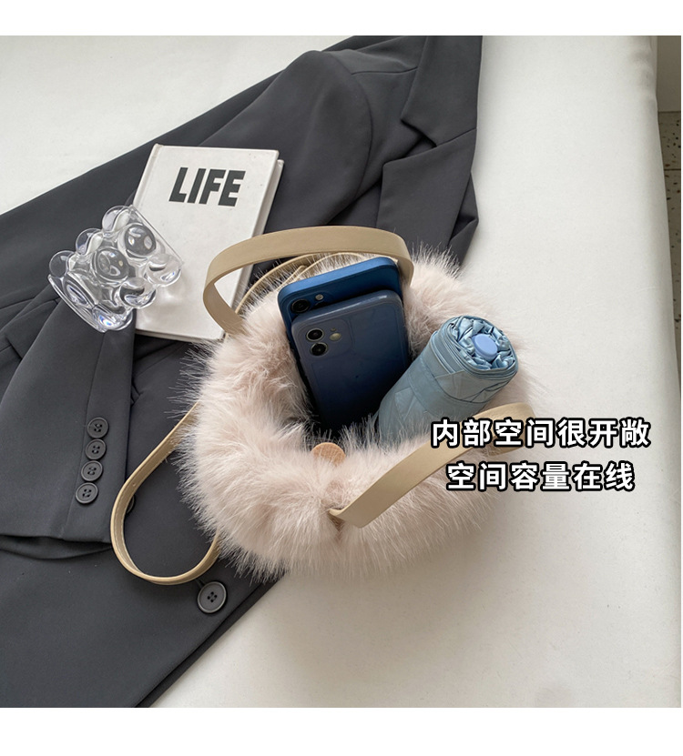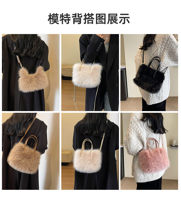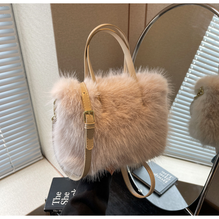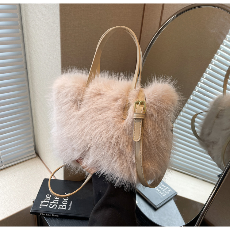 秋冬新作収納用ハンドバッグ、高級感のあるファッショナブルなふわふわ素材、多用途なショルダーバッグ、斜め掛けバッグ