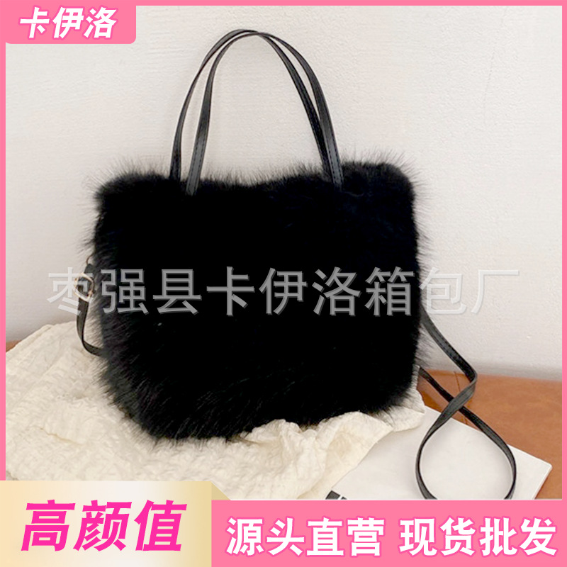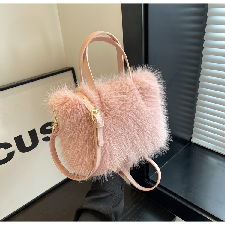卸売りクロスボーダーの新型ベルベットバッグはキツネの毛の斜めショルダーバッグのファッションをまねて、秋冬の毛のカバンのショルダーバッグの卸売りをします。