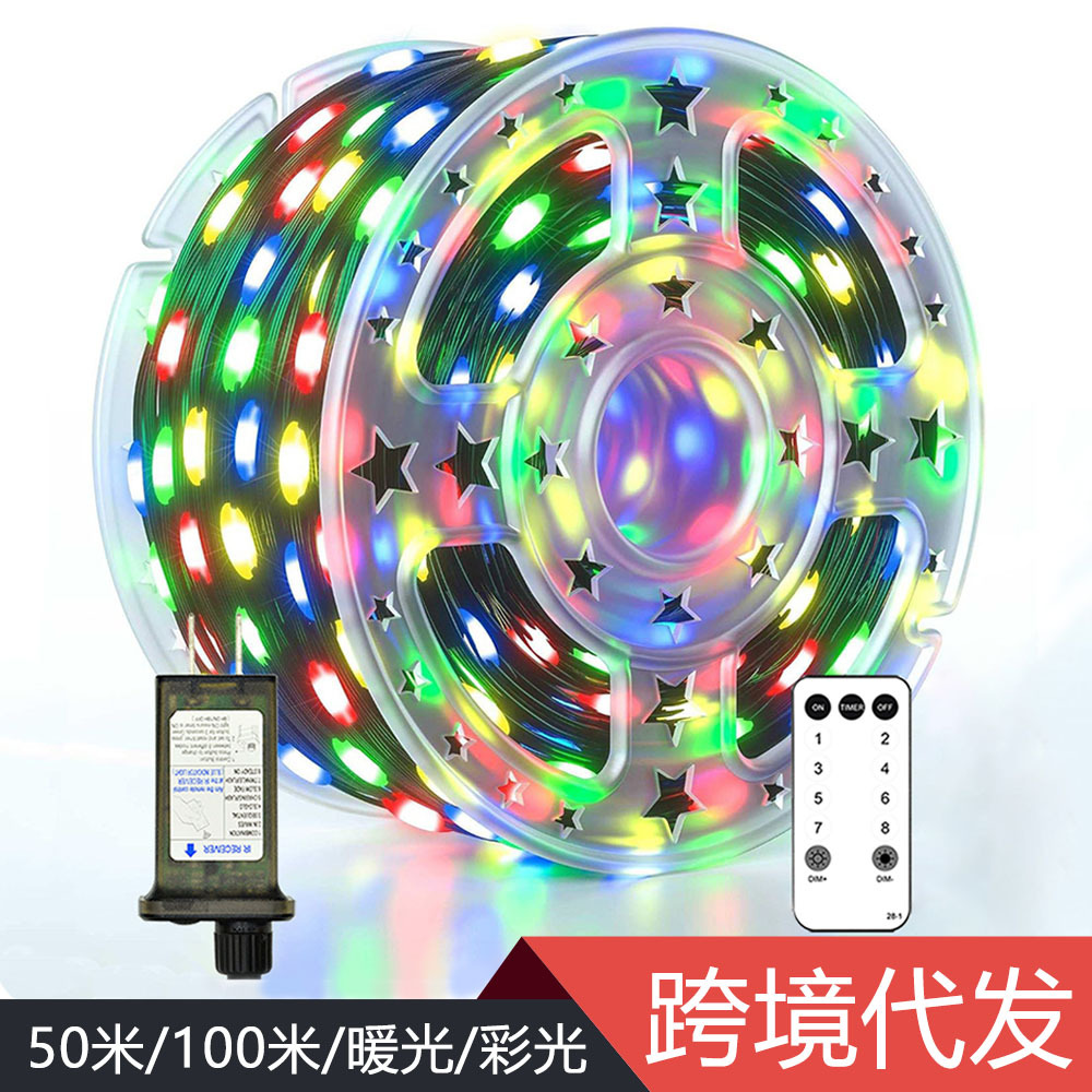 電気リモコンクリスマスツリーの白い線のランプは銅の色のランプをつないで緑に植えます。