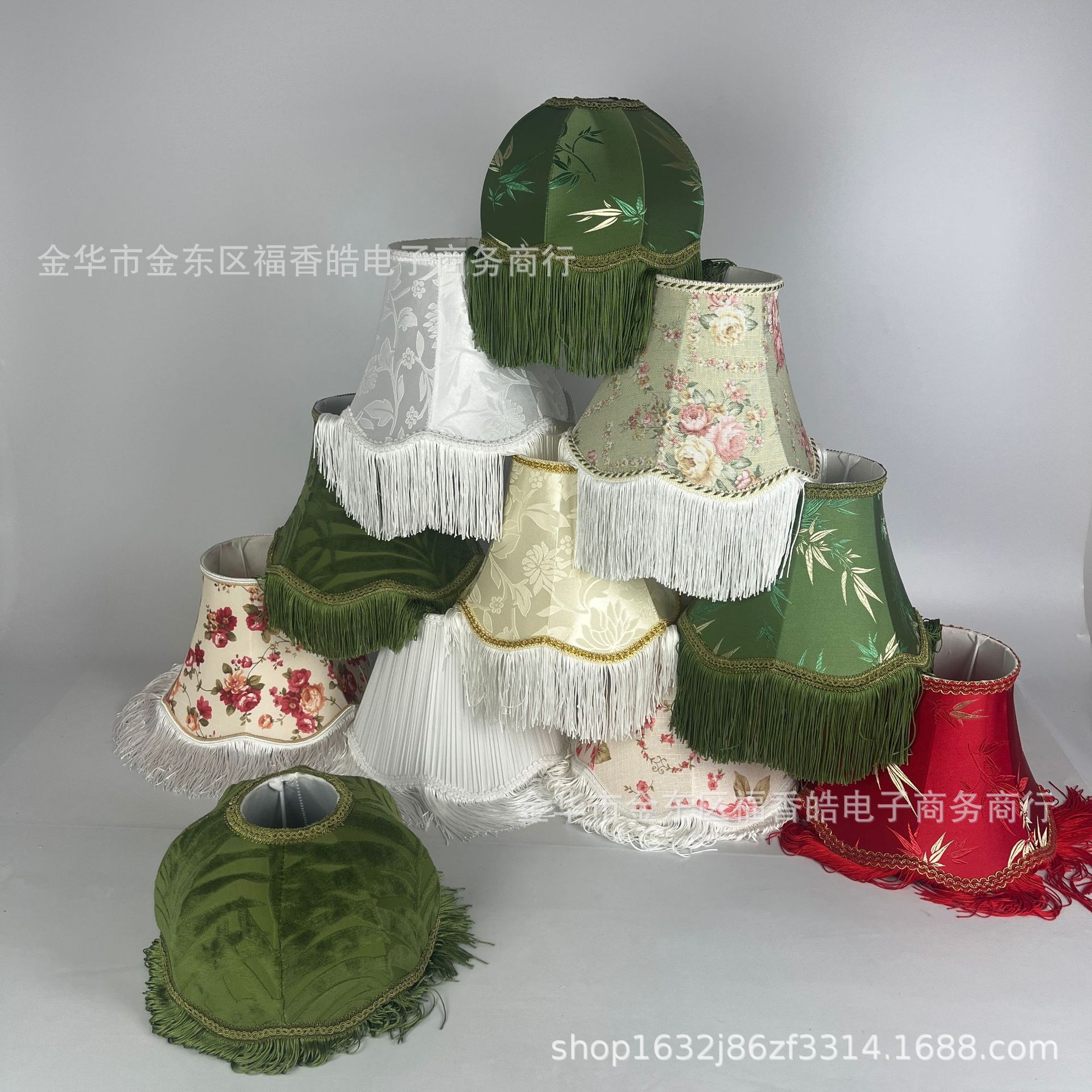 复古尖角流苏灯罩十厘孔布艺吊坠灯罩绿色黄色灯罩配件