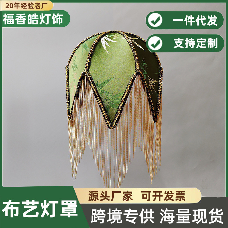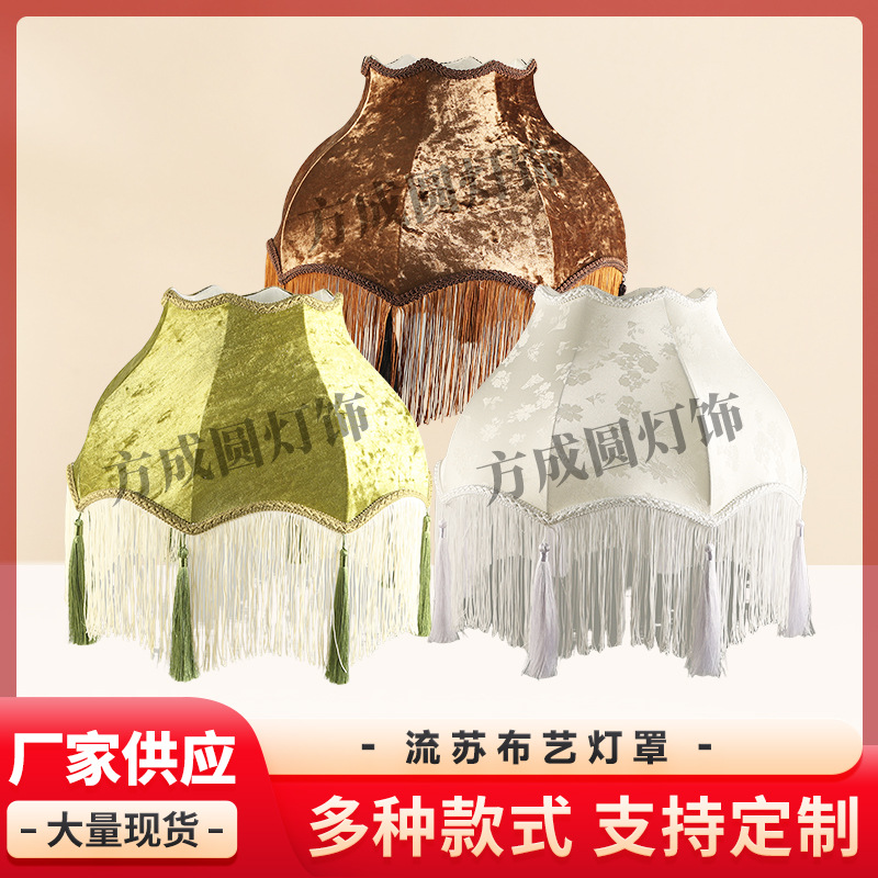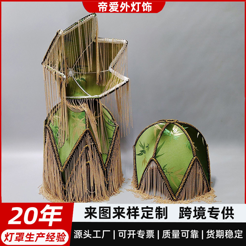 跨境流苏布艺灯罩法式复古客厅落地灯灯罩酒店餐桌吧台吊灯灯罩
