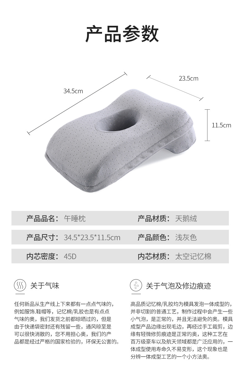 記憶綿子供の昼寝枕小学生の腹ばい枕夏の昼休みに寝る神器事務室の机の上で分解して洗うことができます。