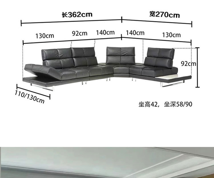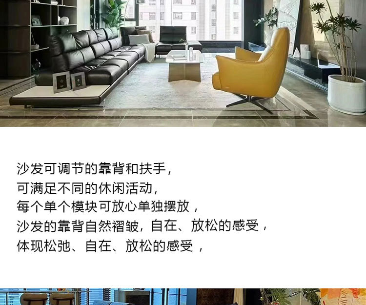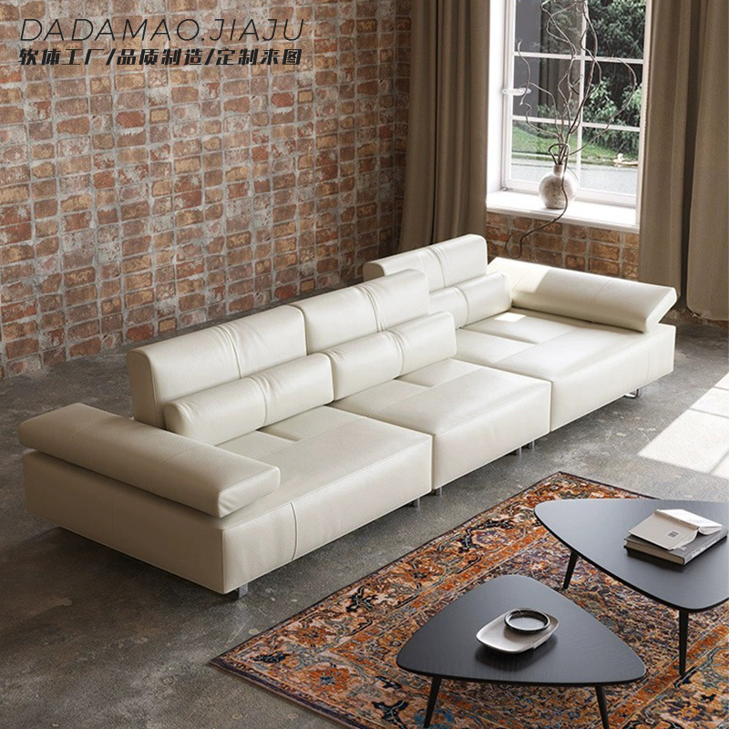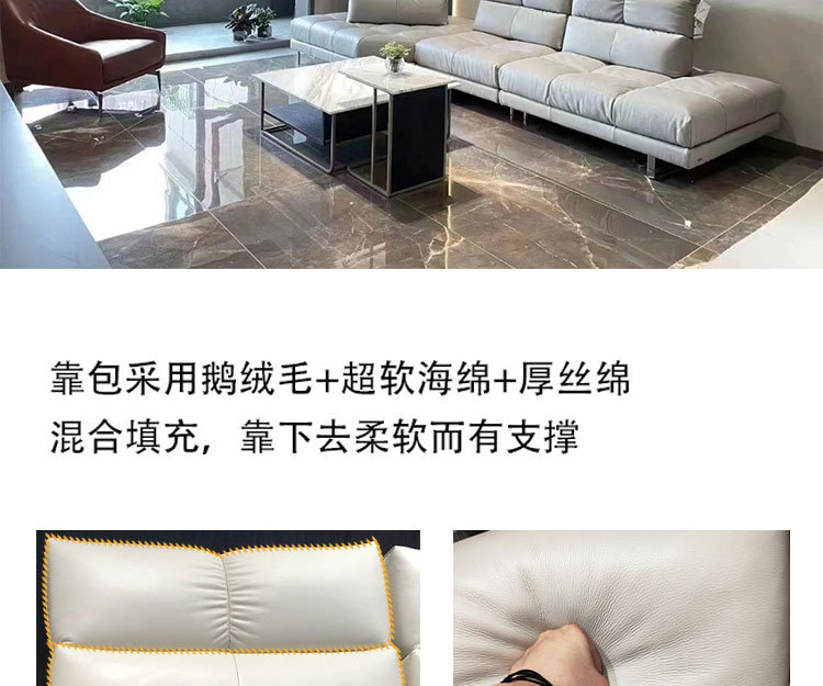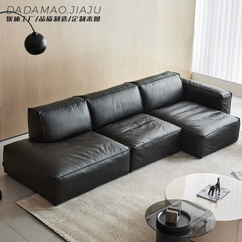 意式极简全头层牛皮沙发客厅宽大坐深大户型可调节高靠背罗马沙发