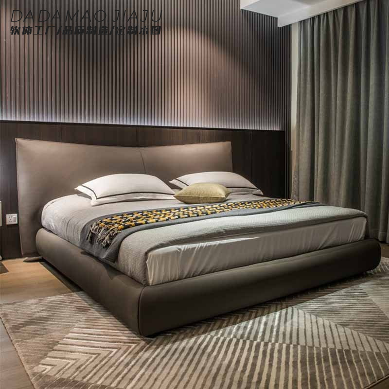 イタリア式の極めて簡単な頭の層のナパの真皮のベッドの寝室の高い背もたれの2人の大きいベッドのデザイナーのネットの赤い香ネルのベッド