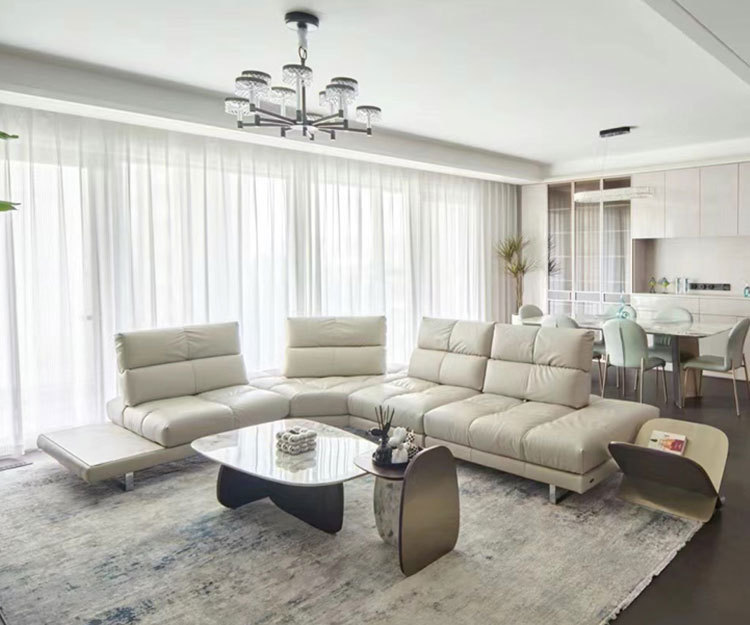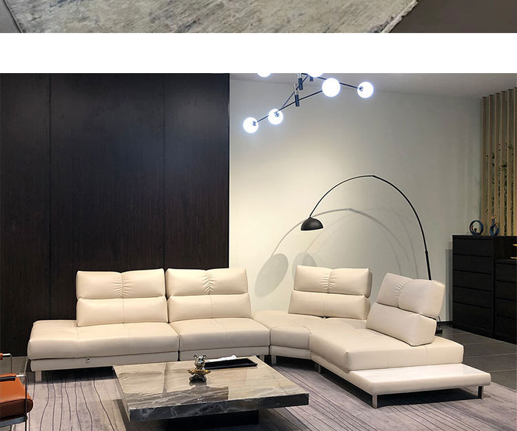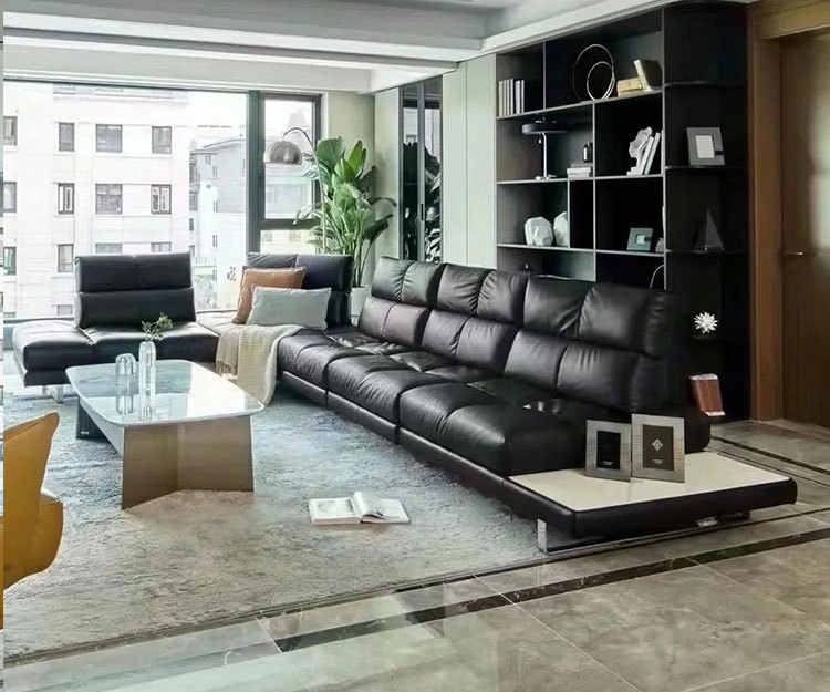 イタリアンレザーローマンソファ 大型リビングルーム用 一層牛革背もたれ可動調整式 超ワイドシートソファ