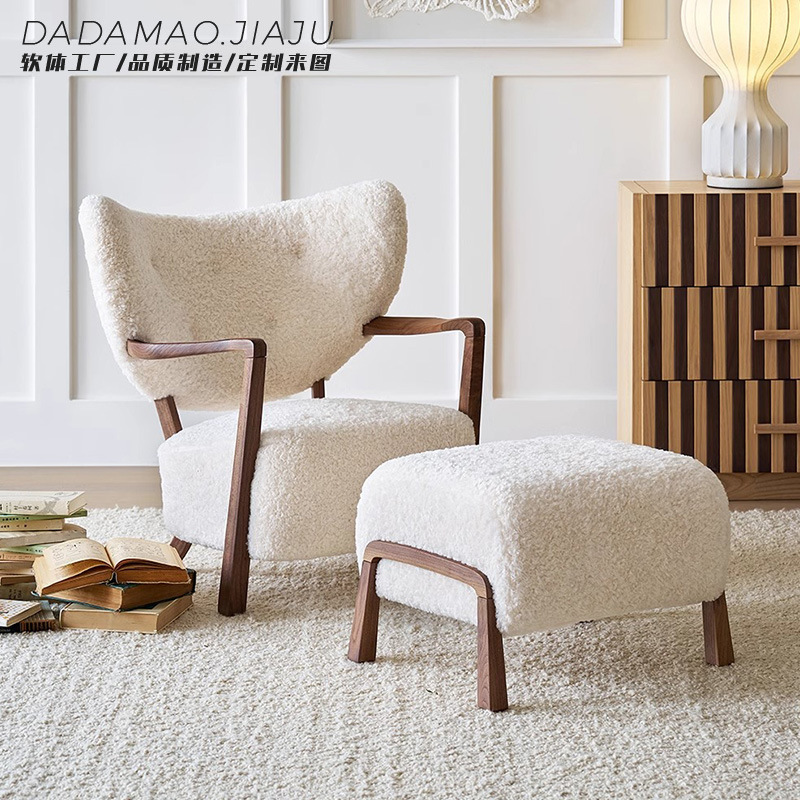 ウッフカジュアルチェアフランス式復古クリーム風北欧実木羊小毛布芸シングルソファ椅子