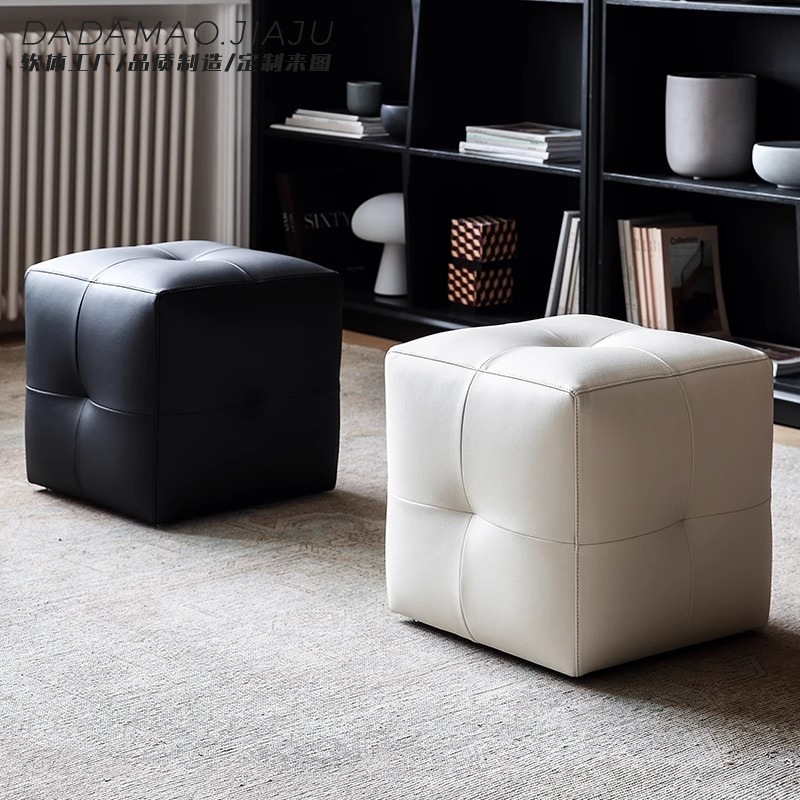 全真皮方墩凳客厅沙发脚踏方凳子软包坐墩皮凳子新款真皮小凳子