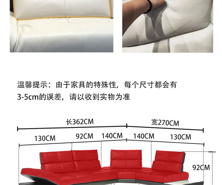 佛山家具时增米洛提全半青真皮功能高靠背大坐深转角罗马沙发客厅