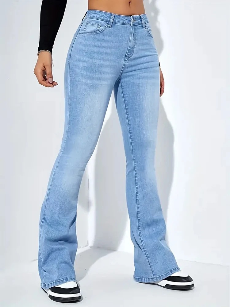 2025跨境欧美喇叭弹力牛仔裤女JEAN简约低腰修身黑色长裤独立站TE
