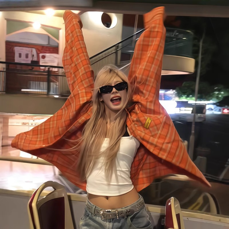 アメリカのレトロで怠惰な風の格子の長袖のシャツの女性の春秋の新型のゆったりしている高級な大衆の日焼け止めのシャツの上着