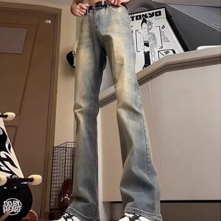 アメリカンレトロな女性用マイクロフレアジーンズ、夏の新しいトレンディなブランド、ストレートレッグ、ルーズデザイン、ニッチカジュアルパンツ、トレンディ